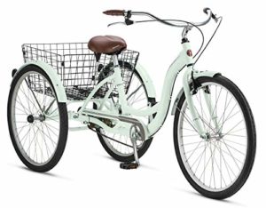 This Adult Schwinn Tricycle is a 26 frame and comes with an attached shopping / beach basket.;Padded spring cruiser saddle absorbs bumps while rear folding basket safely stores belongings.;In