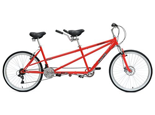 Two is better than one. The Mantis Sidekick Tandem Hybrid features a suspension fork, front disc brake, 18 speed Shimano drivetrain, aluminum wheels, quick release and seat posts, comfort