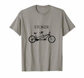 Tandem bicycle tee shirt featuring the word Stoker and a two-seater bike. Let everyone know how you roll! Product Features Are you the stoker of a bike-riding duo? Is