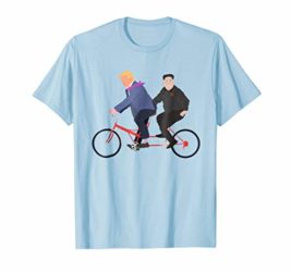 Donal Trump and North Korean dictator Kim Jong Un enjoying a fun afternoon bike ride together! Product Features Lightweight, Classic fit, Double-needle sleeve and bottom hem