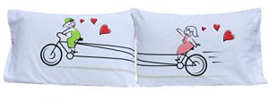 StellaMia Couples Pillowcase Set featuring Tandem Bicycle Product Features Includes set of two high quality white couples pillowcases. (Pillows not included) No black and white stick figures here! Our